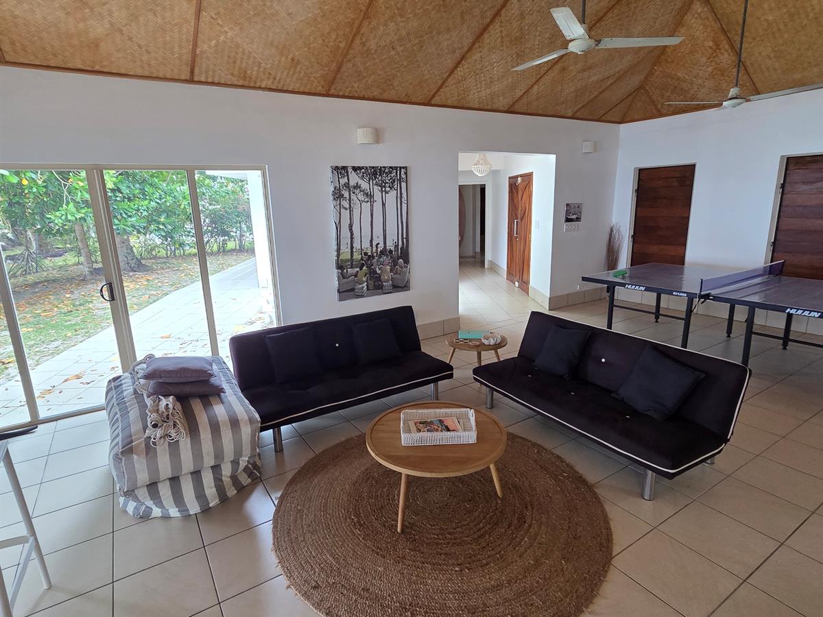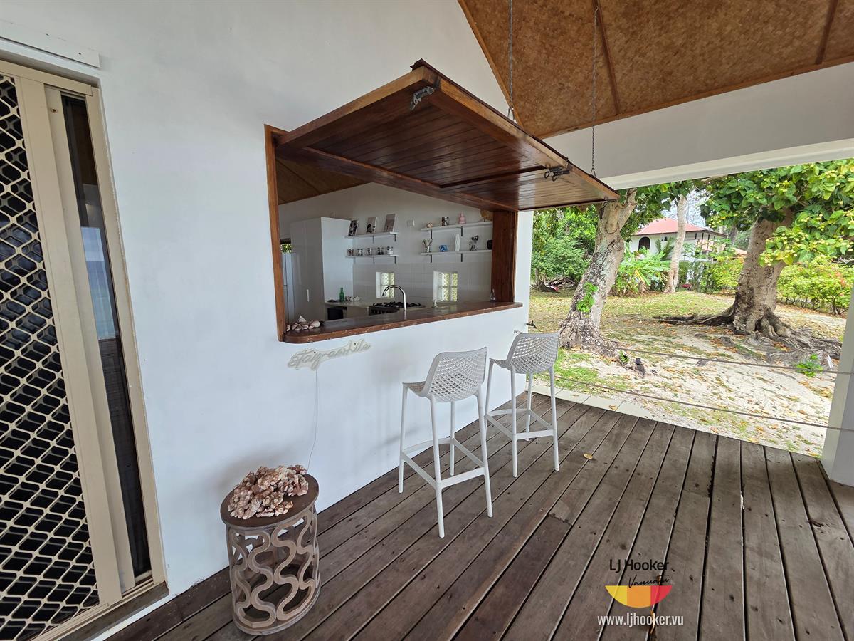 This spacious two-bedroom villa is beautifully appointed and designed for relaxed coastal living. The expansive open-plan interior features a generous lounge and dining area, complete with a ping pong table and seamless passthrough to a large outdoor entertaining faré—the perfect spot to unwind while taking in breathtaking ocean views and some of the most spectacular sunsets Vanuatu has to offer.