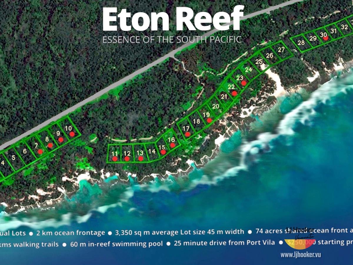 Embrace the rare opportunity to own a piece of Eton Reef, a secluded coastal estate on the shores of Vanuatu’s spectacular Efate Island. Designed for those who value privacy, natural beauty and an effortless island lifestyle, Eton Reef offers the perfect balance of barefoot relaxation and outdoor adventure.